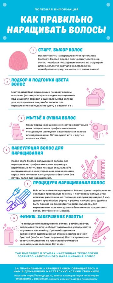 Как правильно наращивать волосы вы можете посмотреть в данной памятке но лучше обращаться за этой услугой к профессионалу например к мастеру Ксении Грининой в Краснодаре