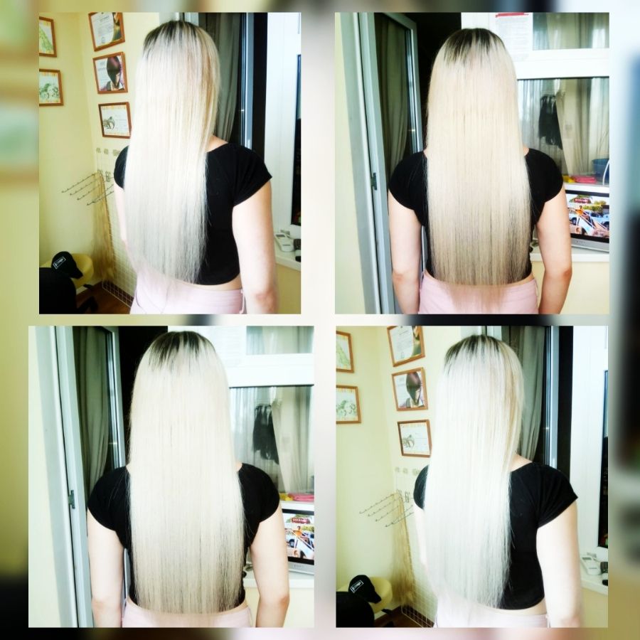 Наращивание натуральных волос по итальянской горячей капсульной технологии в Краснодаре, встречайте нашу новую работу, получилась ослепительная блондинка фото и работа домашней студии Ксении Грининой