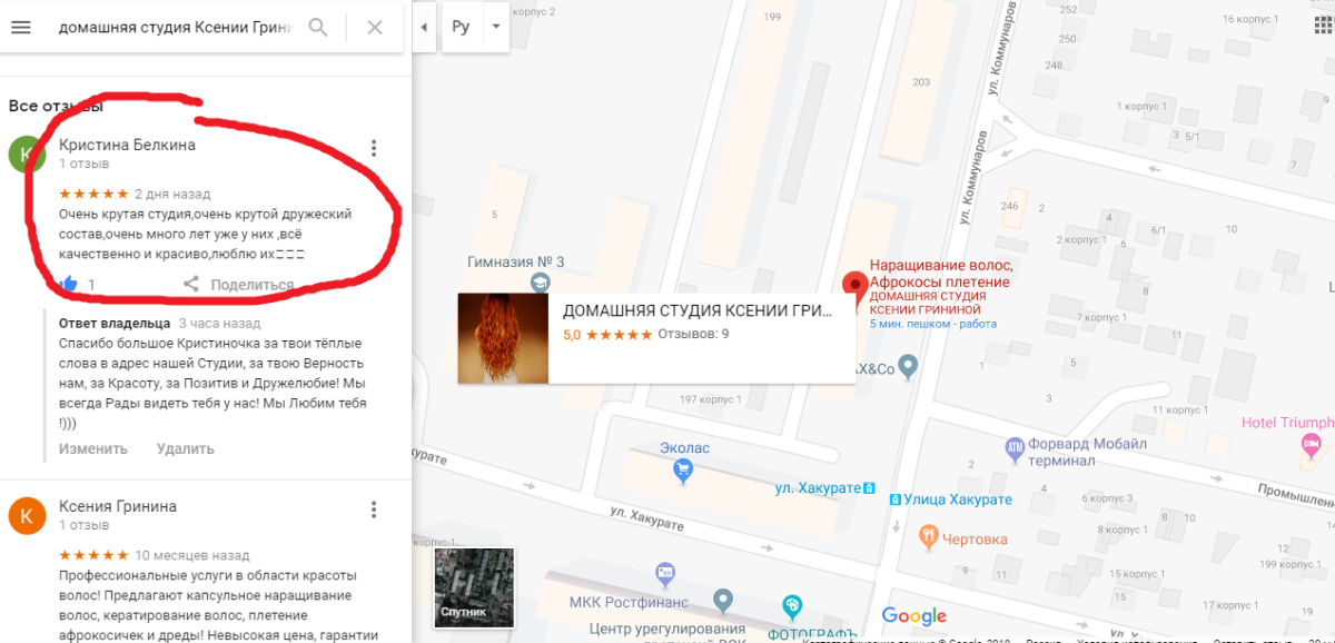 О НАС ПИШУТ ОТЛИЧНЫЕ ОТЗЫВЫ НА GOOGLE КАРТАХ!