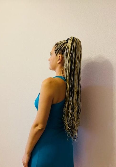 Высокая прекрасная и серьёзная девушка, наша новая Клиентка, попросила сделать афрокосы максимальной длины и чтобы можно было делать высокий хвост! Мы заплели афрокосы зизи прямые, потому что они очень длинные и лёгкие и их удобно носить в хвосте и хвост получается очень красивым!